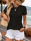 Mujer Camiseta Camiseta superior Frunce Color sólido Moda Clásico Casual Manga Corta Cuello Barco Tops regulares Diario Noche Fin de semana Negro Blanco Verano Primavera
