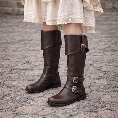 Medieval Renacimiento Zapatos Botas Pirata Vikingo Disfraz Mujer Vikingo Pirata Víspera de Todos los Santos Carnaval Rendimiento LARP Feria Ren Adulto Zapatos