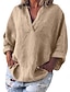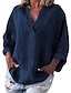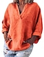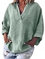 Mujer Camisas de algodón y lino Color sólido Elegante Bohemia Vintage Manga Larga Escote en Pico Tops regulares Diario Ropa de resort Azul Piscina color naranja Verde Trébol Color Caquí Verano
