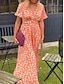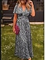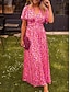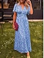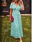 Mujer Vestido maxi Vestido de una línea Vacaciones Casual Exterior Noche Ajuste regular Floral Graphic Manga Corta Escote en Pico Azul Piscina Negro Rojo Naranja Verano Primavera