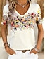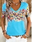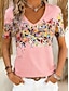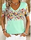 Mujer Camiseta Estampado Floral Graphic Bohemia Vintage Elegante Manga Corta Escote en Pico Tops regulares Diario Azul Piscina Blanco Rosa Naranja Verde Trébol Verano Primavera