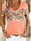 Mujer Camiseta Estampado Floral Graphic Plantas Bohemia Hawaiano Elegante Manga Corta Cuello Barco Escote Redondo Tops regulares Diario Azul Piscina Amarillo Rosa Naranja Verano Primavera