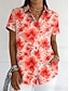 Mujer Camisa Botones Estampado Floral Graphic Vintage Elegante Moderno Manga Corta Cuello Camisero Tops regulares Diario Azul Piscina Rojo Morado Naranja Verano Primavera