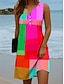 Mujer Mini vestido Vestido de cambio Vestido de verano Vacaciones Casual Boho Diario Festivos Noche Ajuste regular Graphic Geométrico Sin Mangas Cuello con muescas. Azul Piscina Morado Naranja Verde