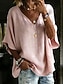 Mujer Blusa Color sólido Diario Elegante Básico Media Manga Escote en Pico Tops regulares Diario Azul Piscina Blanco Rosa Naranja Verde Trébol Verano Primavera