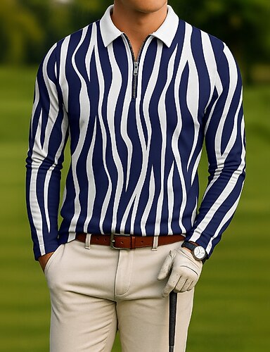 Hombre Geométrico Golf Polo Manga Larga Cuello Vuelto Moderno Ocio Deporte Ropa Deportiva Casual Diario Cremallera Impresión 3D Primavera Otoño Azul Piscina Morado Verde Trébol