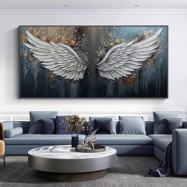 Pintura al óleo pintada a mano hecha a mano pared alas de oro blanco pintura decoración del hogar lienzo enrollado sin marco sin estirar