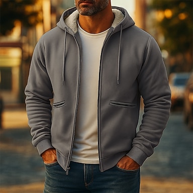 Hombre Sudadera con capucha y cremallera completa Sudadera con cremallera Chaqueta de lana Sudadera con capucha de lana Negro Azul Marino Caqui Gris Con Capucha Plano Cerrar Retazos Deporte Casual