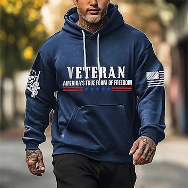 Hombre Letra Estampados Bandera Sudadera Moda Diario Casual Manga Larga Con Capucha Vacaciones Fiesta Ropa de calle Festival Negro Azul Real Marrón Verde Ejército Gris Correa Bolsillo Estampado Otoño