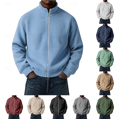 Hombre Sudadera Sudadera con estampado de gofres Sudadera con cremallera completa Negro Blanco Verde Claro Vino Azul Marino Cuello Mao Plano Cerrar Con Texturas Casual Diario Deporte Ropa de calle