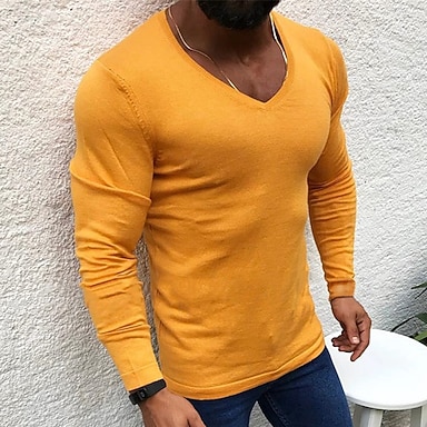Hombre Pulóveres Chaqueta de Punto Estriado Tejer Tops regulares De Punto Plano Escote en Pico Vacaciones Moda Casual Ropa Cotidiana Ropa Primavera & Otoño Negro Amarillo M L XL