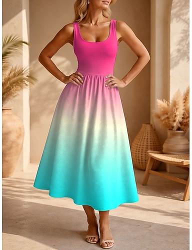 Mujer Vestido Midi Vestido de verano Vestido de una línea Vacaciones Casual Boho Playa Cita Ajuste regular Ombre Graphic Sin Mangas Escote en U Rosa Morado Naranja Verano Primavera