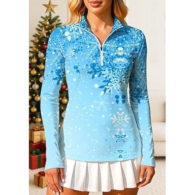 Mujer Geométrico Tops Camisas de polo Camiseta de tenis Tee de tenis Manga Larga Estampado Cremallera de un cuarto Pullover Protección UV Elástico Transpirable Voleibol Tenis Golf Escote Chino Cuello