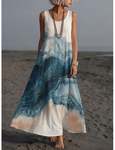 Mujer Vestido maxi Vestido informal Vestido lencero Moda Básico Moderno Diario Exterior Playa Ajuste regular Impresión de mármol Sin Mangas Cuello Barco Azul Piscina Verano Primavera