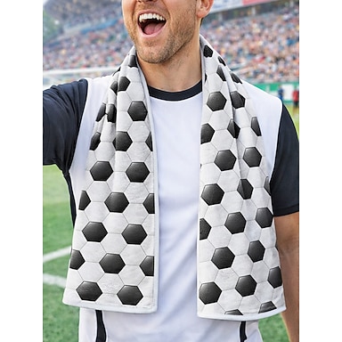 Bufanda de toalla deportiva de poliéster con estampado de fútbol para hombre, ideal para entrenamientos, partidos, apoyo a los aficionados, entrenamientos en el gimnasio y fitness.