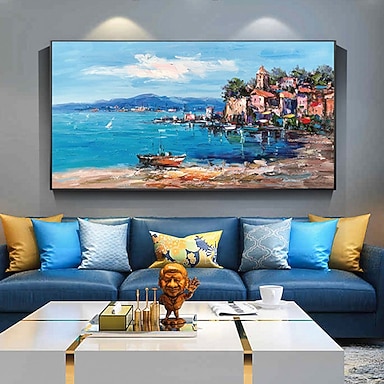 Pintura al óleo hecha a mano lienzo decoración del arte de la pared pintura abstracta del paisaje marino ciudad portuaria para la decoración del hogar pintura enrollada sin marco sin estirar