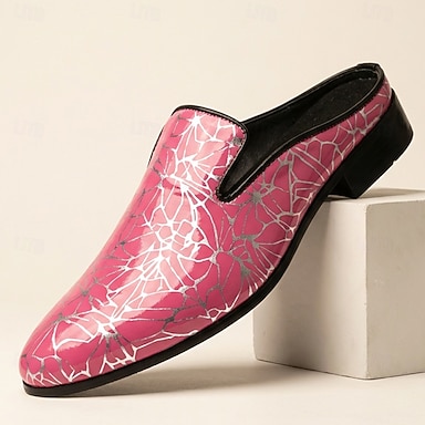 Mules de piel sintética rosa para hombre, zapatos casuales y elegantes para fiestas, trabajo y uso diario.