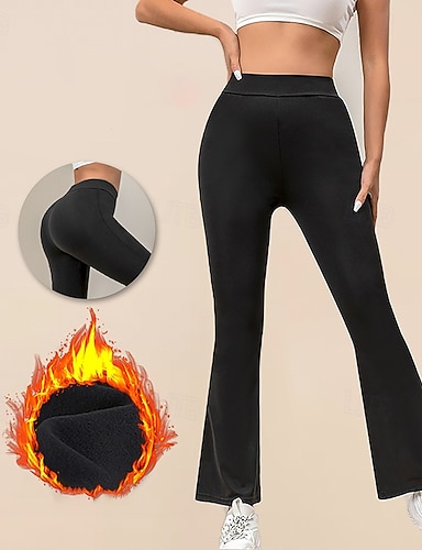 Mujer leggings acampanados Leggings de yoga de vellón Alta cintura Gimnasio De Deporte Pilates Prendas de abajo Color sólido Negro Invierno Deportes Ropa de Deporte