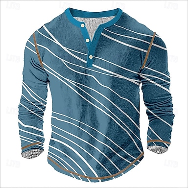 Hombre Graphic Abstracto Henley Shirt Tee Manga Larga Vintage Moda Design Casual Diario Exterior Primavera & Otoño Todas las Temporadas Verde Azul Claro Azul Oscuro Henley Camiseta Henley