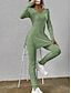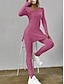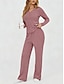 Mujer Conjuntos de dos piezas Conjuntos de pantalones parte superior del bolero Manga Larga Escote Redondo Color sólido Correa Elegante Moda Ropa de calle Casual Diario Exterior Negro Rosa Verde