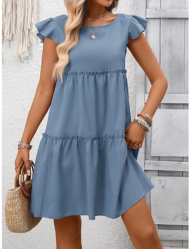 Mujer Mini vestido Vestido informal Vestidos Peplum Elegante Moda Moderno Exterior Vacaciones Noche Holgado Plano Manga Corta Cuello Barco Azul Piscina Negro Verde Ejército Burdeos Verano Primavera