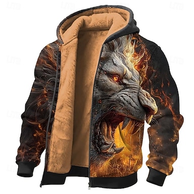 Hombre León 3D Vellón Sudadera Chaqueta Fantasía Cuello Barco Exterior Camping Negro Azul Piscina Cerrar Otoño Invierno Diseñador S M L XL 2XL 3XL