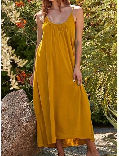 Mujer Vestido Midi Vestido de verano Vestido informal Vestido lencero Elegante Moda Moderno Exterior Playa Vacaciones Holgado Plano Sin Mangas Escote en U Amarillo Burdeos Verde Trébol Azul Oscuro