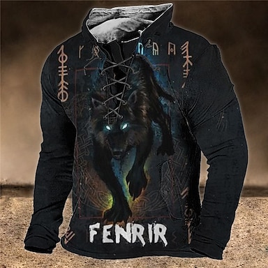 Hombre Animal Lobo Estampados Sudadera Pull-over Manga Larga Camisa de entrenamiento Cuello Mao Ropa de calle Design Básico Impresión 3D Deporte Casual Diario Acordonado Primavera & Otoño