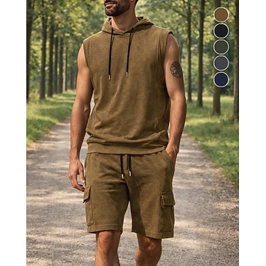Hombre Tracksuit Vestimenta para correr Trajes de entrenamiento Correa 2 Piezas Color sólido Camiseta de running con pantalones Conjunto de ropa deportiva Verano Primavera Negro Amarillo