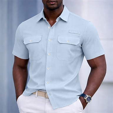 Hombre Camisa Camisa casual Abotonar la camisa Camisa cargo Negro Blanco Azul Marino Azul Color Caquí Manga Corta Plano Cuello Camisero Casual Diario Bolsillo delantero Ropa Elegante Moda Diario