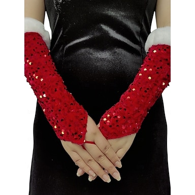 Guantes navideños rojos con lentejuelas para mujer con puños de piel sintética, guantes brillantes para fiestas navideñas y eventos festivos.