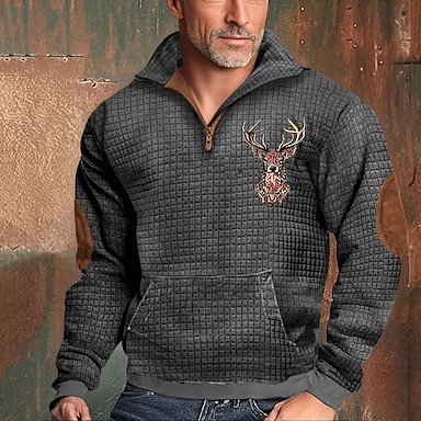 Hombre Sudadera Sudadera con un cuarto de cremallera Negro Gris Media cremallera Bloque de color Reno Media Cremallera Estampado Deporte Diario Festivos Vintage Ropa de calle Casual Otoño invierno