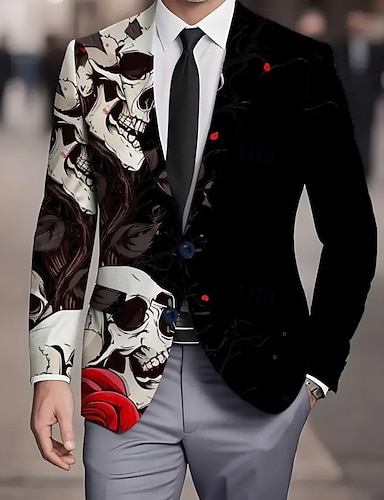 Abrigo blazer para hombre casual de calle festival diario británico de todas las estaciones 100% poliéster calaveras impresión 3D botones térmico cálido cómodo blazer de un solo botón negro