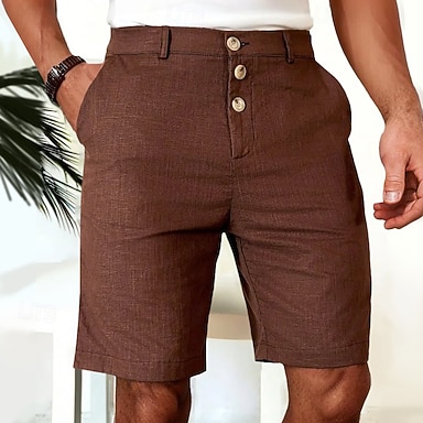 Hombre Pantalón corto Pantalones cortos de lino Pantalones cortos de verano Pantalones cortos de playa Botones Bolsillo Pierna recta Plano Comodidad Transpirable Longitud de la rodilla Exterior