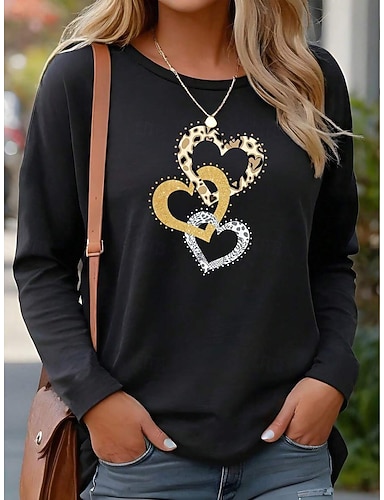 Mujer Camiseta Estampado Corazón Graphic Vintage Moda Elegante Manga Larga Cuello Barco Escote Redondo Tops regulares Diario Fin de semana Amarillo Rojo Verano Primavera Otoño