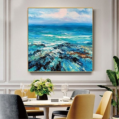 Pintura al óleo pintada a mano hecha a mano, arte de pared, pinturas de paisaje del océano azul, decoración del hogar, decoración, lienzo, pintura para sala de estar