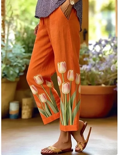Mujer Lino de algodón sintético Perneras anchas Pantalones casuales Pantalones de verano Vacaciones Moda Ropa de calle Hasta el Tobillo Media cintura Floral Graphic Bolsillo Cintura elástica Estampado