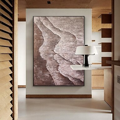 Pintura al óleo hecha a mano, lienzo, arte de pared, decoración, marrón, minimalista, abstracto para decoración del hogar, marco estirado, pintura colgante/pintura enrollada sin marco, sin estirar