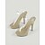 Sandalias de tacón de aguja con tira al tobillo en satén color marfil para mujer con detalle de cristal en la parte posterior, elegantes tacones de novia para una boda urbana.