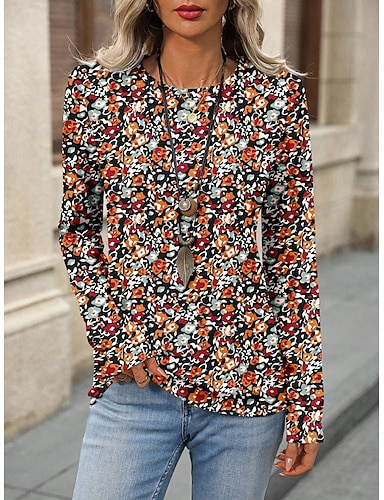Mujer Camiseta Estampado Floral Graphic Plantas Moda Elegante Clásico Manga Larga Cuello Barco Escote Redondo Tops regulares Diario Fin de semana Naranja Verano Primavera Otoño