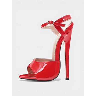 Sandalias de plataforma rojas de tacón alto para mujer – tacones de aguja de charol para discoteca y pole dance. &noche de fiesta sexy