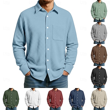 Hombre Camisa Camisa de gofres Textura Camisa casual Abotonar la camisa Negro Blanco Verde Claro Burdeos Azul Marino Manga Larga Plano Cuello Camisero Casual Diario Puro Ropa Elegante Moda Casual