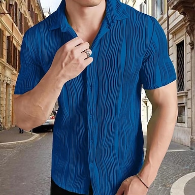 Hombre Camisa Textura Camisa casual Abotonar la camisa Negro Blanco Azul Real Verde Trébol Manga Corta Plano Diseño Casual Diario Ropa Moda Moderno Casual Cómodo
