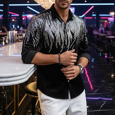 Hombre Camisa camisa de baile Camisa disco Camisa de terciopelo Negro Manga Larga Alas Diseño Casual Diario Lentejuelas Ropa Moda Casual De moda Cómodo