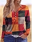 Mujer Camiseta Estampado Graphic Geométrico Plaid Vintage Elegante Clásico Manga Larga Cuello Barco Escote en Pico Tops regulares Diario Naranja Primavera Otoño