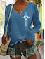 Mujer Camiseta Estampado Graphic Geométrico Vintage Elegante Clásico Manga Larga Escote en Pico Cuello con muescas. Tops regulares Diario Azul Piscina Rojo Morado Verde Trébol Primavera Otoño Invierno