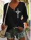 día de San Valentín Mujer Camiseta Estampado Corazón Graphic Vintage Elegante Clásico Manga Larga Escote en Pico Tops regulares Diario Azul Piscina Negro Blanco Primavera Otoño