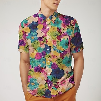 Retro Antiguo Años 70 Camisas Camisa hawaiana Hippie Disco Floral Disfraz Hombre Mascarada Vacaciones Fiesta Desfile del orgullo Adulto Camisas