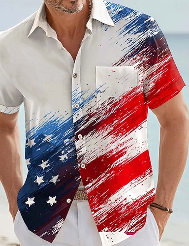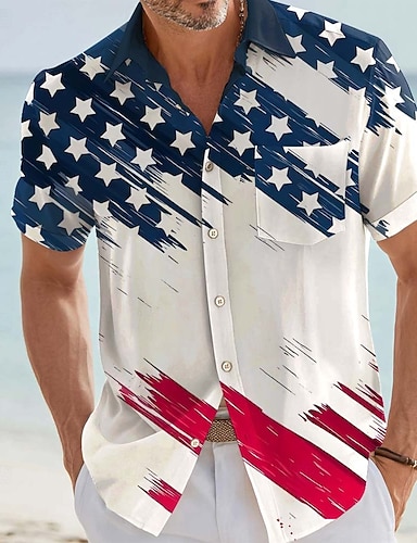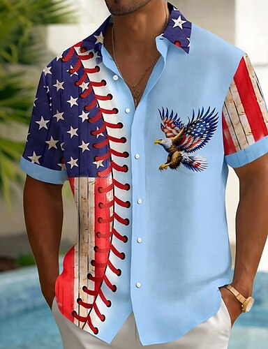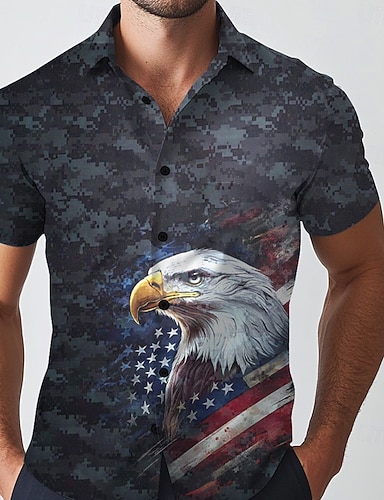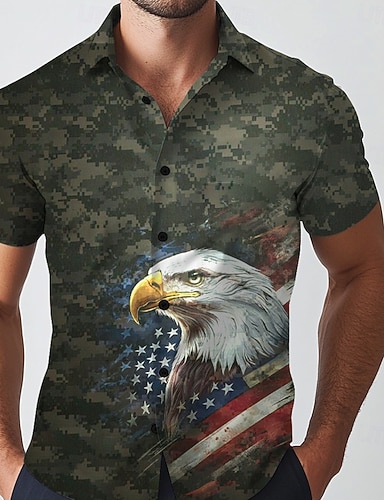 Camisa patriótica de águila de la bandera de EE. UU. para hombres del Día de la Independencia camisa de verano camisa abotonada manga corta moda casual vacaciones verano primavera con cuello caído