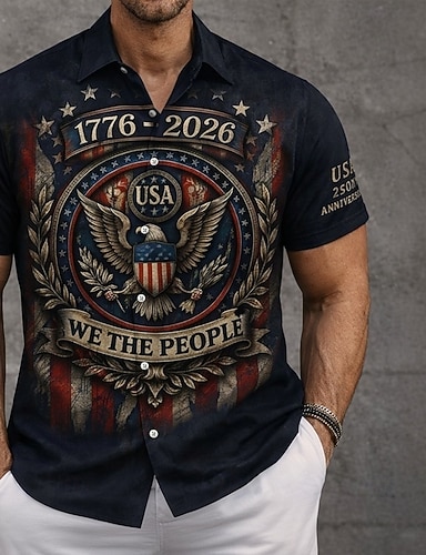 Día de la Independencia Hombre Bandera estadounidense de los Estados Unidos 4 de julio, 250 aniversario de Estados Unidos Patriótico Camisa Camisa de verano Abotonar la camisa Manga Corta Moda